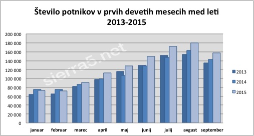 Na letni ravni Brnik beleži 10,6% rast števila potnikov (največ, kjer ima Fraport večinski lastniški delež), ter 1,4% rast tovornega prometa. Povprečna zasedenost letal je v prvih desetih mesecih za 6,3% višja, kot v enakem obdobju prejšnje leto. Sicer, pa je v prvih treh kvartalih videna rast števila potnikov iz posameznih držav s področij Balkana, severnih držav Srednje Evrope ter Švice. Top 5 destinacij, kamor potniki največ potujejo preko rednih povezav iz Aerodroma Ljubljane, vendar do tja (še) ni direktnih letov so Bukarešta, Atene (redni leti pričnejo junija 2016), Sofija, New York in Madrid.
