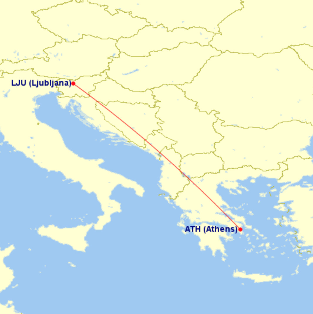 Otvoritveni let je predviden za sredo, 15. junija 2016 s pristankom na Brniku ob 12:40 uri. Leti bodo dvakrat tedensko, ob sredah in sobotah. Sredin let je dopoldanski, medtem ko je sobotni let večerni, z odhodom iz Ljubljane ob 17:15 in prihodom v Atene ob 20.uri. Na letih je predvideno letalo Airbus A320.