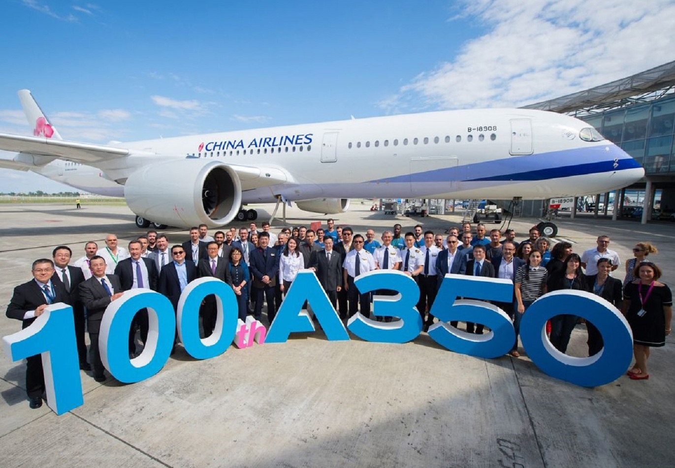 Airbus je slovesno predal svoje stoto letalo A350 XWB kupcu. To se je zgodilo v manj kot treh letih od predaje prvega A350 letalski družbi Qatar Airways v decembru leta 2014. Stoto letalo z registracijo B-18908 je prejela tajvanska letalska družba China Airlines, ki ima v floti že šest letal tega tipa.