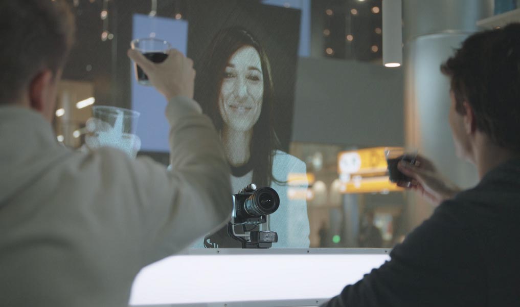 Hologramski bar v resničnem času ljudi poveže s projekcijo na letališče na drugem koncu sveta. Da bi KLM z "Vzletnimi nasveti" dosegel kar najširše občinstvo, so posneli pogovore med potniki, ki so potovali v nasprotne smeri. Najtoplejše trenutke smo združili tudi v kratek film, ki so ga delili na spletu.