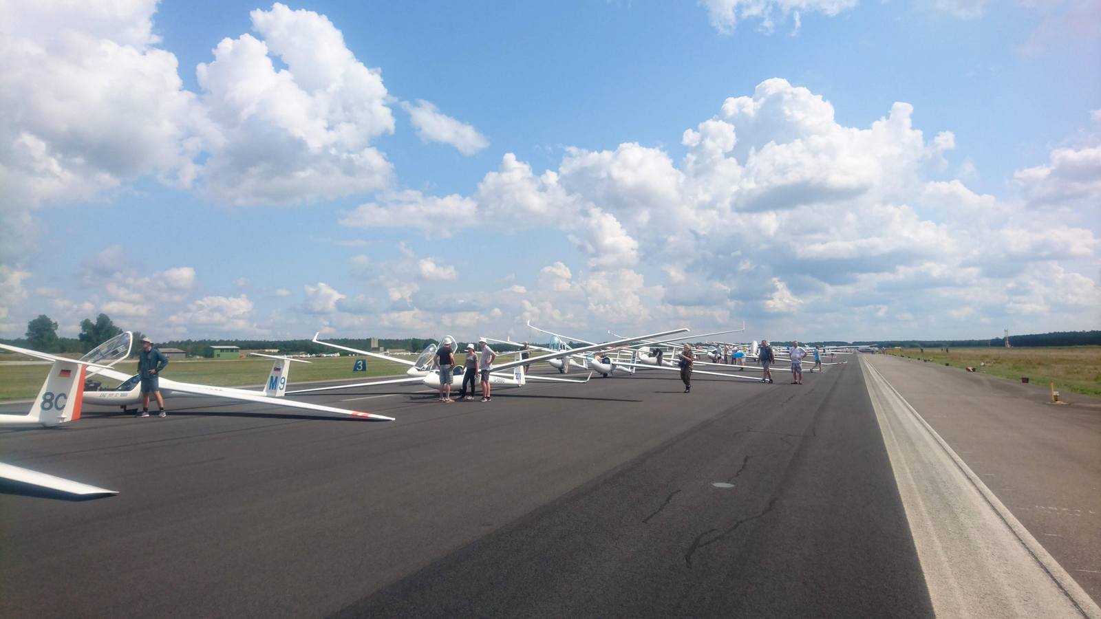 Končno smo spet normalno zadihali. Temperature so se nekoliko spustile in vse je bilo takoj lažje. Med pripravami na letenje se debata ves čas vrti okrog baterij, polnilcev in vsega kar je povezano z elektriko v letalu. Žal brez nje ni letenja. Disciplina za ta dan je bila 3,5 urni AAT. Štartava med zadnjimi in zelo hitro napredujeva proti prvi točki, zato let v prvem cilindru tudi nekoliko podaljšava. Drugo kateto večinoma odletiva nad Poljsko. Nekajkrat se znajdeva malo nižje, za nekaj časa se tudi razideva, vendar se ob povratku proti domu zopet najdeva in odletiva skupaj do cilja. S povprečno hitrostjo nekaj čez 90km/h zasedeva odlična mesta , 3.Šlaus in 5.Korpič.