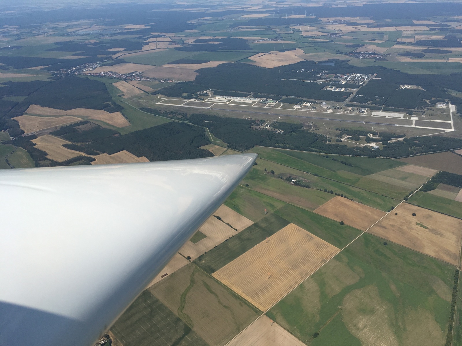 Na jutranjem pilotskem posvetu smo se spraševali o smiselnosti današnje naloge glede na zelo dobro vremensko napoved. Ali je naloga prekratka, ali pa imamo preveč časa za njo, so se porajala vprašanja ob prejetju AAT taska z maksimalno dolžino naloge 314km in časom 3h15min. Tokrat sva pred odprtjem štartne linije 'padla' nizko in porabila kar nekaj časa, da sva se povzpela do višine oblakov na 1500m. Konkurenti so med tem že startali, midva pa sva se med zadnjimi podala v lov za njimi. Proti skrajnemu robu prve točke, ki je bil od letališča oddaljen 150km, sva letela odlično. Nekaj skrbi nama je povzročala edino ploha, ki se nam je neustavljivo približevala z zahoda preko reke Labe, vendar sva jo s hitrim letenjem proti drugi točki dokaj dobro obšla. V drugem cilindru sva se ob izogibanju zračnega prostora znašla v rahlih težavah, a že po nekaj minutah našla spet dobro dviganje in let zaključila s fantastičnim doletom v cilj. Sam sem v cilj priletel nekoliko prehitro, odletel 311km s hitrostjo skoraj 96km/h, in s tem zasedel 1.mesto, Damijan pa je na drugem končal tik za mano. Dvomi o dolžini in času naloge so bili upravičeni, toda to zdaj ni bilo pomembno. Skupno sva se izstrelila na 2. in 3.mesto, a časa za slavje ni bilo, saj se je bilo potrebno spočiti za zadnji dan tekme.