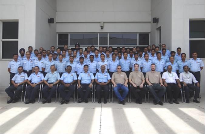 Pipistrelovi letalski Inštruktorji v družbi Indijskih inštruktorjev po zaključku treninga letenja v letalski bazi.