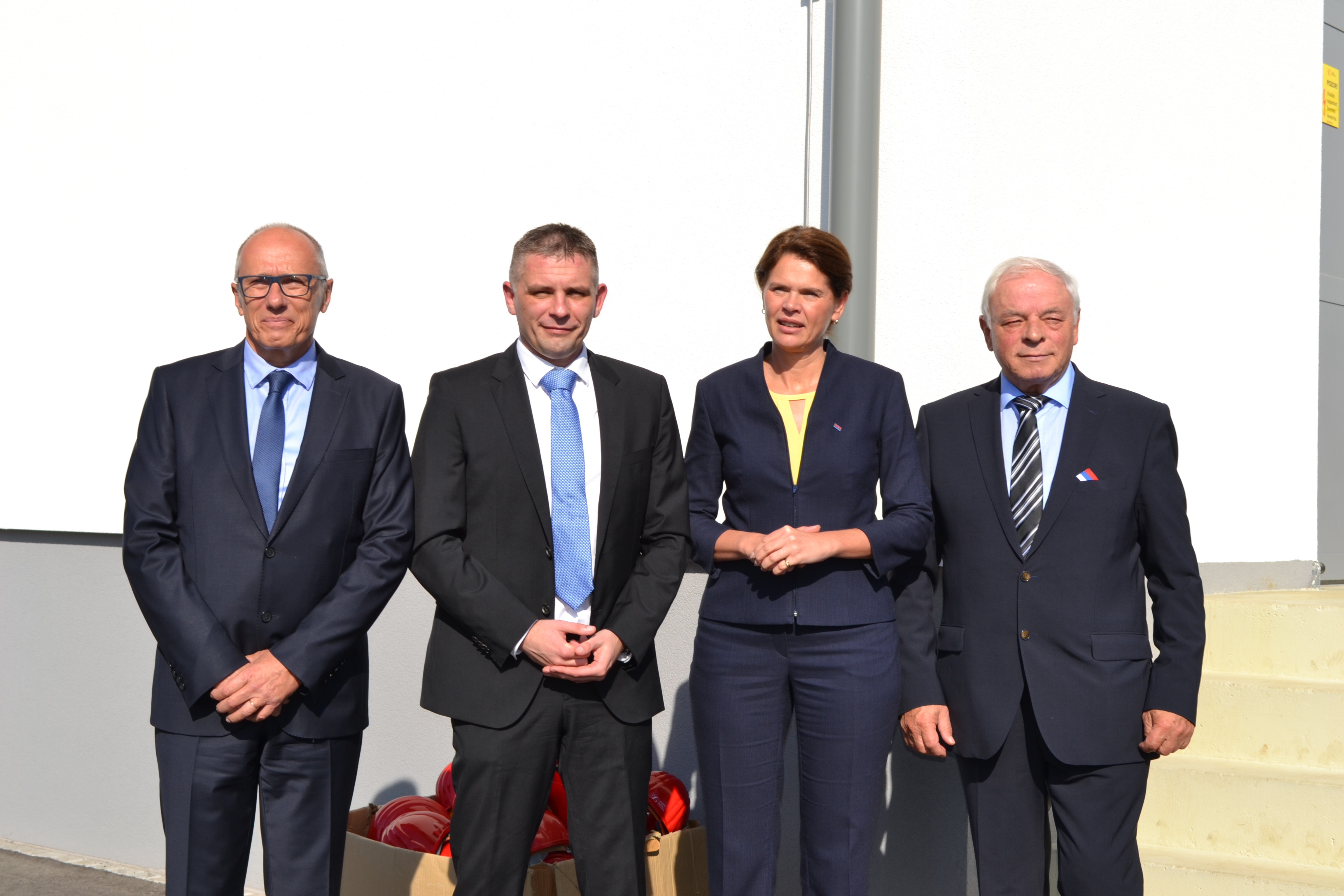 Na sliki od leve proti desni: poslovodni direktor Fraporta Slovenija Zmago Skobir, predsednik uprave Elektra Gorenjska dr. Ivan Šmon, podpredsednica vlade in ministrica za infrastrukturo mag. Alenka Bratušek ter župan Občine Cerklje na Gorenjskem Franc Čebulj