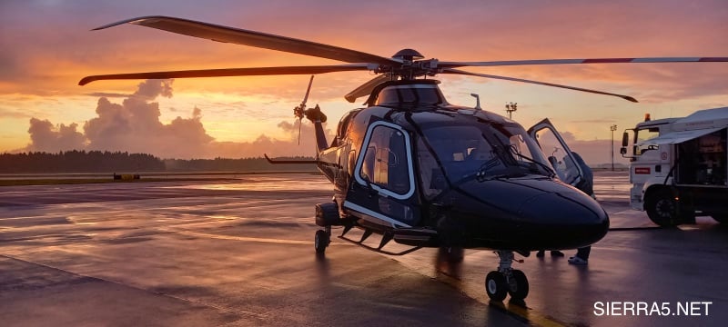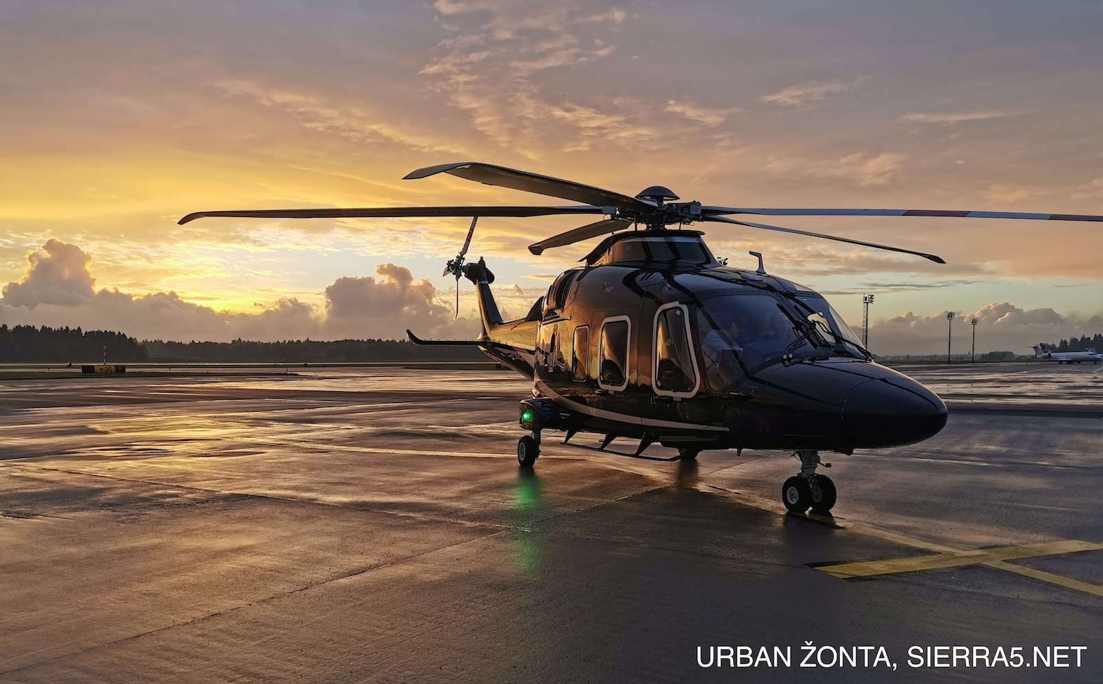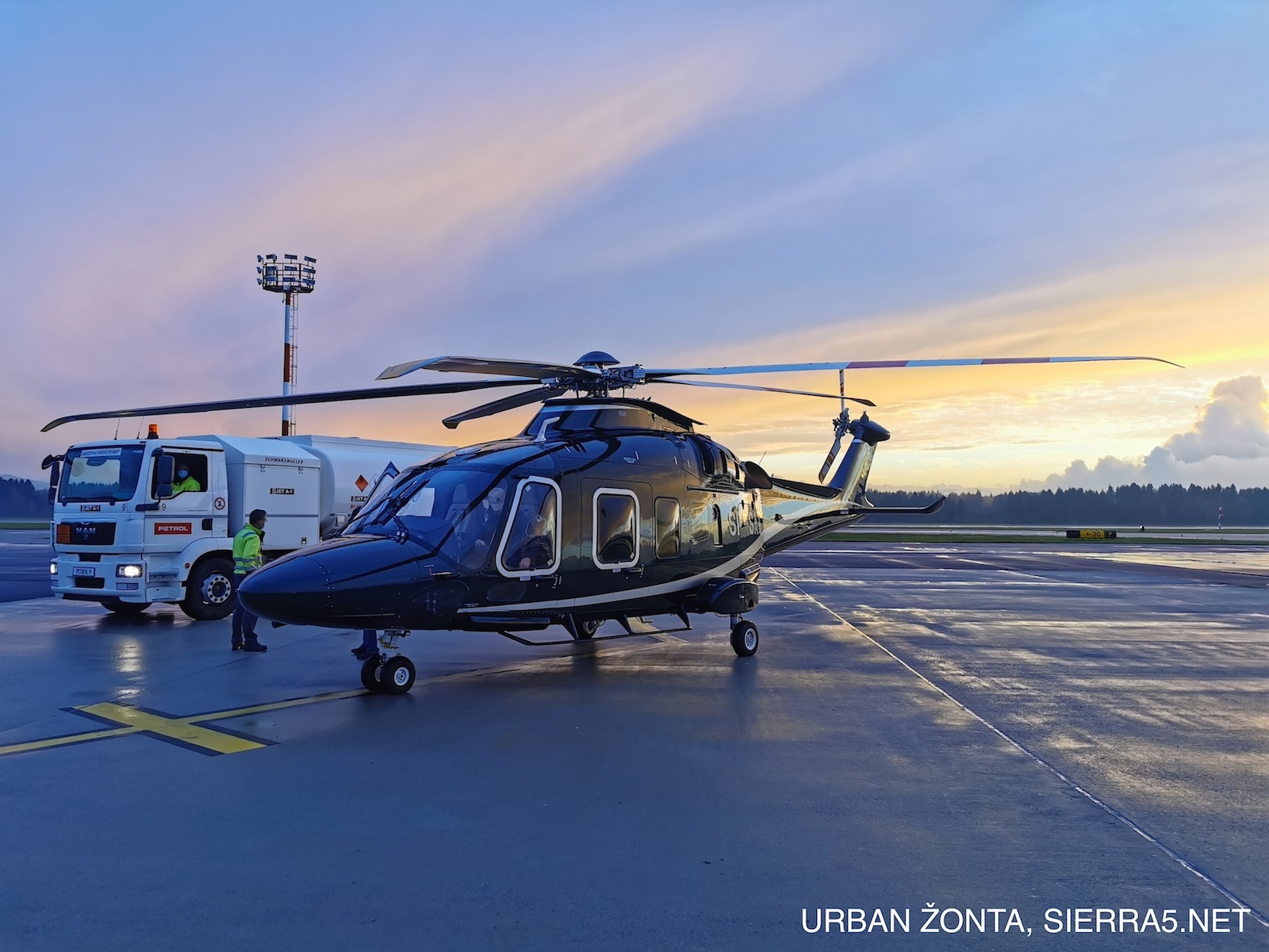 Včeraj tik pred sončnim zahodom je na Brniku pristal popolnoma novi helikopter AgustaWestland AW169 poljskih registrskih oznak SP-SAT. Helikopter je priletel iz letališča Milano Malpensa, opravil tehnični postanek v Ljubljani ter pot nadaljevalo preko češkega letališča Brno do končne destinacije na letališču Chopin v Varšavi. Po naših informacijah gre za helikopter zasebnega naročnika v VIP konfiguraciji. V članku objavljamo nekaj fotografij s tehničnega postanka ter oskrbe helikopterja z gorivom na Brniku včeraj.
