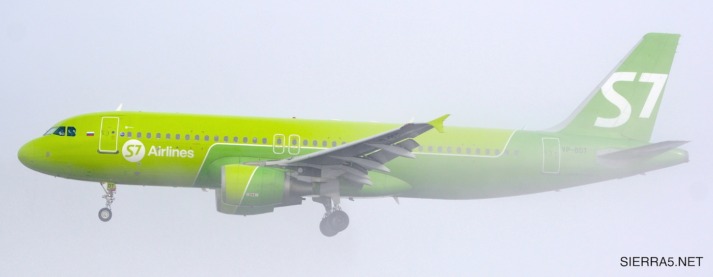 Včeraj dopoldan je iz daljnega Jekaterinburga pristalo 174-sedežno letalo Airbus A320 (reg. oznak VP-BDT) ruske letalske družbe S7 Airlines (Siberia Airlines).