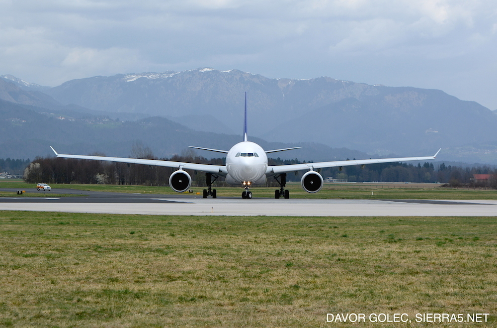 Airbus A330 je na Brnik priletel iz Frankfurt, odletel pa po nekaj deset minutah nazaj v bazo Évreux-Fauville, od koder je začel svoj let dopoldan, ko je poleg največjega nemškega letališča in Ljubljane obiskal še francoski Lille.