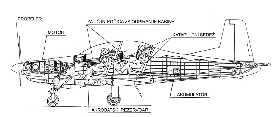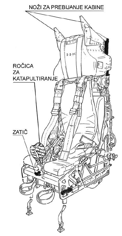 Tretji sklop predstavitve je bil namenjen katapultnemu sedežu. V letalu PC-9M sta dva sedeža Martin-Baker Mk CH 11A 3/4. Delujeta neodvisno od vseh drugih sistemov v letalu in sta med letenjem nezavarovana, torej pripravljena na katapultiranje pilota v vsakem trenutku, tudi če je letalo razbito in na tleh. Štabni vodnik Ržen je najprej predstavil odpiranje kabine, ki je iz pleksistekla. Sprednje steklo je debelo deset milimetrov, zadnje pa šest milimetrov. Če kabine ni mogoče odpreti, je treba steklo razbiti. Na ročici za odpiranje kabine je tudi varnostni zatič, ki ga pred poletom tja iz katapultnega sedeža vstavi pilot. Tako je katapultni sedež pripravljen na delovanje, za kar je treba potegniti rumeno- črno ročico. Sila potega ročice je 16 kilogramov. V sedežu so vgrajeni pironaboji, ki sedež katapultirajo iz letala in lahko predstavljajo nevarnost. Sedež po aktivaciji prebije steklo in poleti 28 metrov nad letalo. Ob tem na pilota delujejo pospeški od 17 do 22 g. Ob potegu ročice za katapultiranje se padalo odpre po le 2,65 sekunde. Za primere, ko se pilot ne katapultira in ga je treba rešiti iz letala, je štabni vodnik Ržen gasilcem predstavil tudi pravilno odpenjanje s sedeža in zavarovanje sedeža pred nenamerno aktivacijo. Sedež je sicer pred nenamerno aktivacijo zavarovan z zatiči. Eden izmed zatičev je samostojen in ga pilot odstrani iz sedeža pred vzletom (glej skico). Zatakne ga na notranjo stran kljuke kabine. Preostalih pet je na rdečem traku in prav tako preprečujejo nenamerno aktivacijo katapultnega sedeža. Te letalski tehnik pred letom odstrani in položi v škatlo zraven sedeža. Ko je letalo na tleh, vstavljeni zatiči varujejo sedež pred nenamerno aktivacijo, da lahko letalski tehniki opravljajo svoje delo v pilotski kabini.