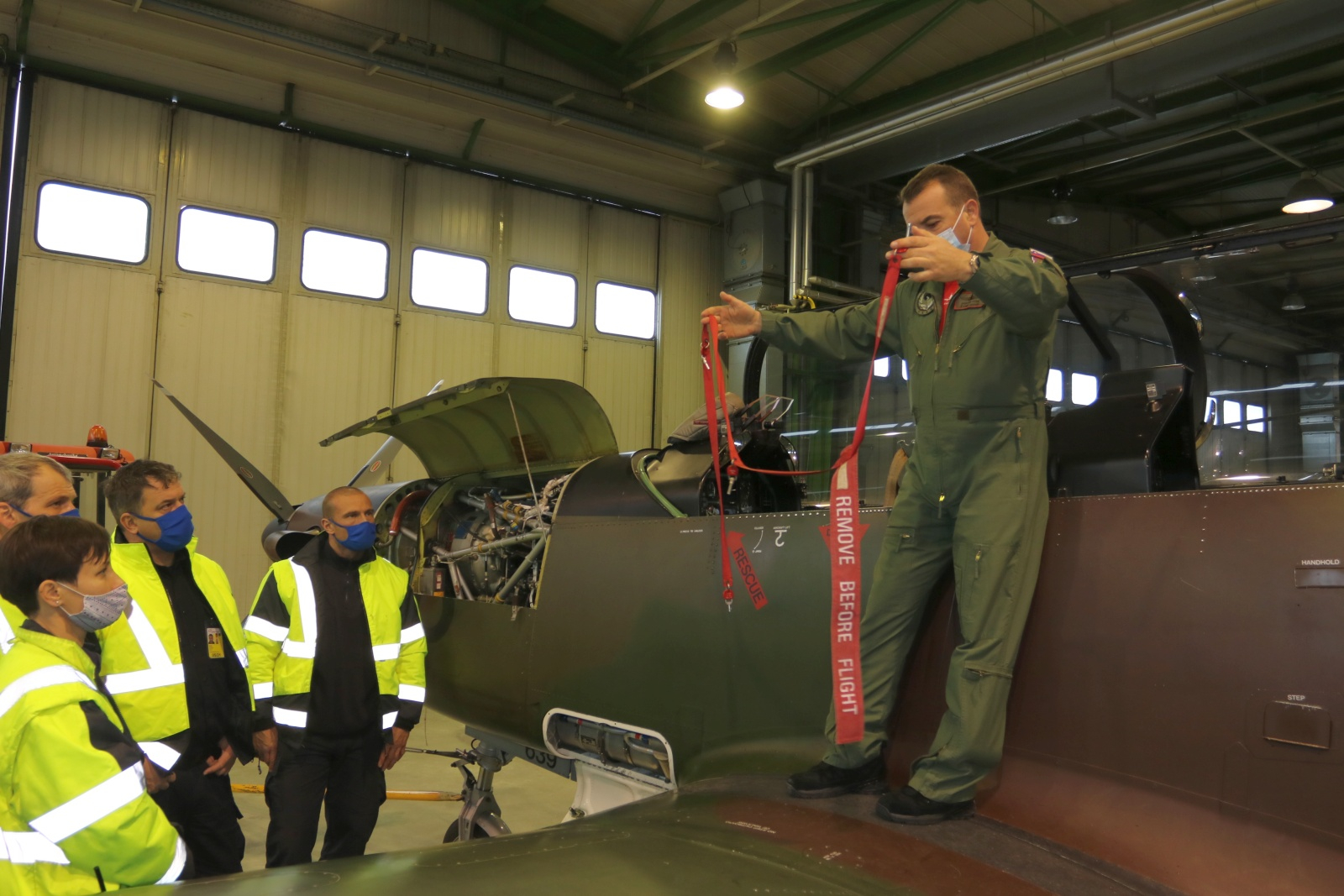 Konec decembra je 153. letalsko-tehnična eskadrilja 15. polka vojaškega letalstva organizirala praktično seznanitev. Letalski tehnik in orožar štabni vodnik Damjan Ržen je letališkim gasilcem predstavil nevarnosti ob nesreči letala PC-9M. Razdelil jih je v tri sklope: sistemi na letalu, oborožitev in katapultni sedež. V prvem sklopu je izpostavil motor, in sicer njegov vroč in rotirajoč del ter rezervoarje in gorivo, električni sistem, predvsem napajanje in položaj akumulatorja, ter hidravliko, pri čemer morajo biti reševalci pozorni na tekočine, tlačne posode, kisikove jeklenke, zračne zavore in pristajalno podvozje.
