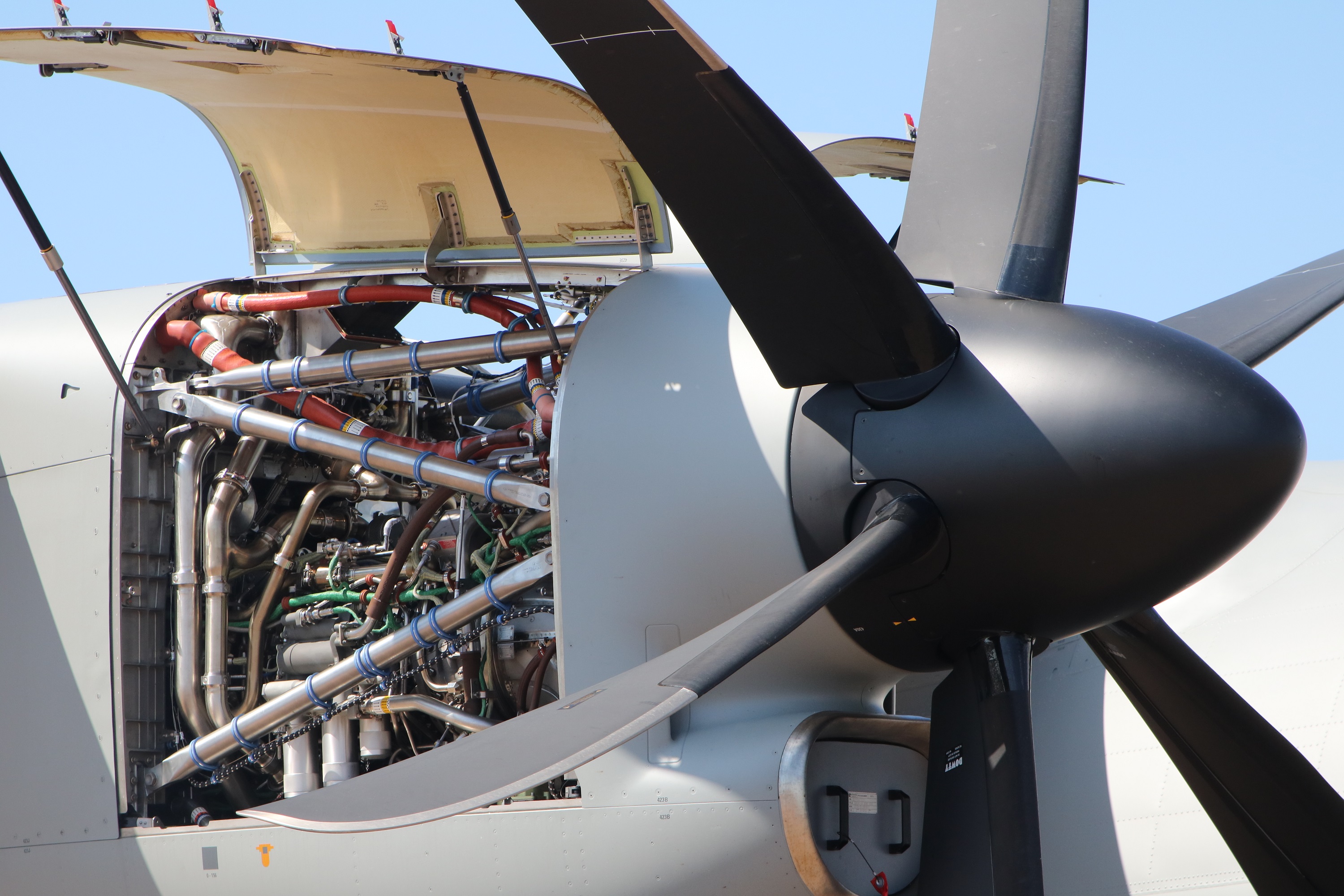 Poganjata ga dva močna turbopropelerska motorja z zmogljivostjo 4637 konjskih moči, zaradi katerih lahko vzleta in pristaja tudi na nepripravljenih neasfaltiranih oziroma konstrukcijsko neurejenih improviziranih vzletno-pristajalnih površinah. Letalo lahko v operativni konfiguraciji leti in manevrira z obremenitvami, večjimi od trikratnega pospeška zemlje. Letalo ima tudi možnost nastavitve naklona letala za hitro natovarjanje in raztovarjanje tovora. Za na primer hitro natovarjanje in raztovarjanje na improviziranih letališčih, ki nimajo podpornih sistemov delovanja, je letalo opremljeno s pomožnim generatorjem (angl. Auxilary Power Unit), ki omogoča neodvisno delovanje letalskih električnih, hidravličnih in pnevmatskih sistemov brez pomoči delovanja glavnih motorjev oziroma zunanjega vira napajanja.