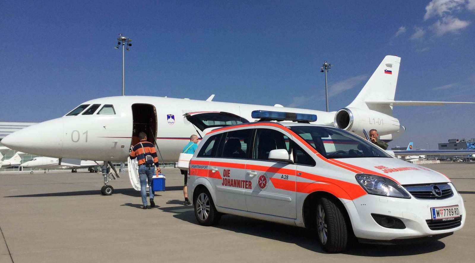 Slaba ura mine, kot bi trenil, in že se peljem na Brnik. Obtičim v koloni zaradi popravil ceste in razmišljam, kako se bo končal današnji dan. Čas kar naenkrat teče še hitreje. Ime snemalca sem izvedel pol ure pred odhodom. Res pozno. Na Brnik pridem pred novinarsko ekipo, ki jo počakam na vhodu. Skupaj gremo do posadke, ki je že pripravila vse za let. Kmalu se k letalu pripelje reševalno vozilo s spremstvom. Izstopi zdravniška ekipa. Tokrat so štirje, dva specialista kirurga iz Univerzitetnega kliničnega centra Ljubljana in dva specializanta. Gledam jih z največjim spoštovanjem. Oni rešujejo življenja.