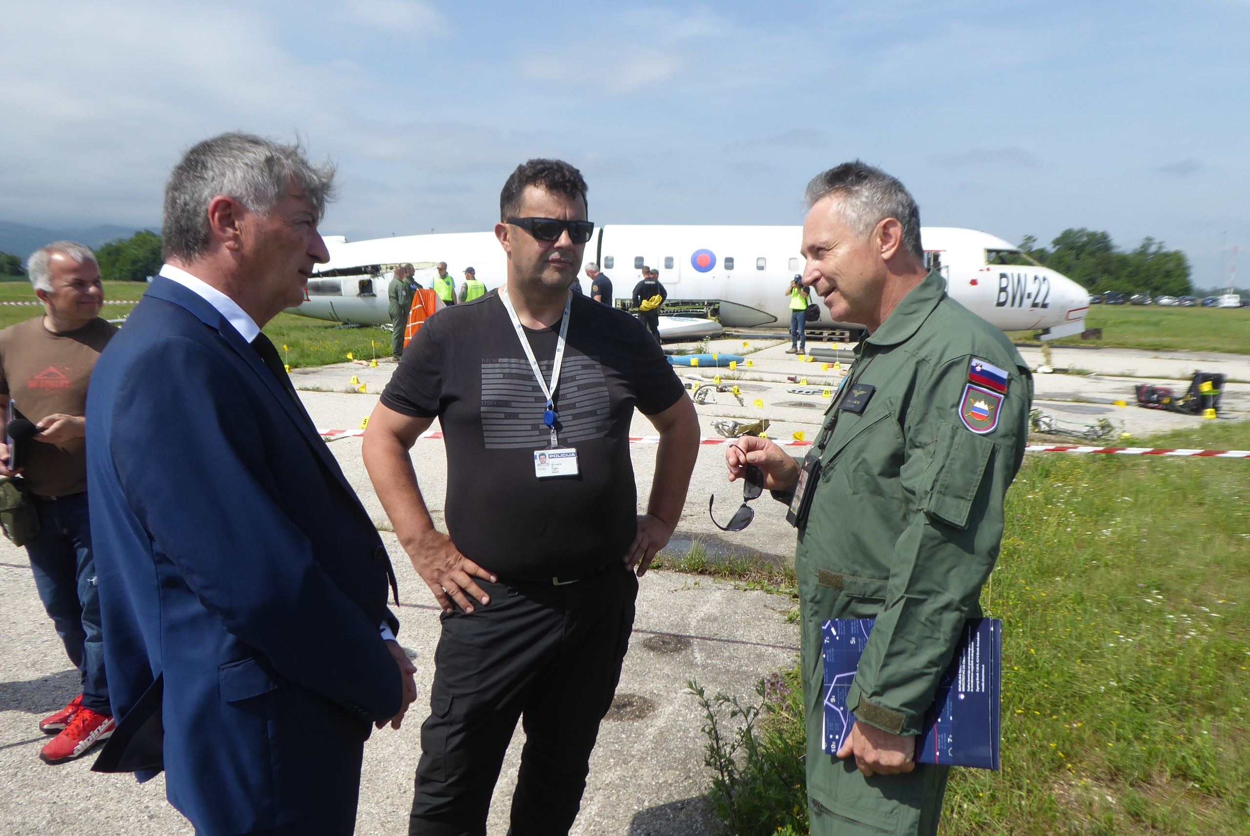 Vajo si je ogledal tudi državni sekretar na ministrstvu za obrambo Rudi Medved, ki je povedal, da se je pri obvladovanju kriznih razmer, ki nastanejo ob takih nesrečah treba prilagajati sodobni tehnologiji, ki nas obkroža in ta sodobna tehnologija prinaša s seboj tudi najrazličnejše izzive. Scenarij vaje je predvideval trk vojaškega transportnega letala in električnega letala, ki se je zgodil na nizki višini. Na kraju nesreče so bile žrtve in poškodovan član posadke transportnega letala. Po trčenju je izbruhnil požar in stekla je reševalna akcija. Namen vaje je bil razširiti znanja in vedenja o delovanju in morebitnih grožnjah v primeru letalske nesreče tudi na tiste deležnike v sistemu kriznega odzivanja, ki se v primeru letalske nesreče nanjo prvi odzovejo - torej reševalce, gasilce in druge službe ter posameznike, ki se prvi znajdejo na prizorišču letalske nesreče. Franc Glušič iz Generalne policijske uprave je izpostavil tvorno sodelovanje policije, Slovenske vojske ter komisije za preiskovanje letalskih nesreč in incidentov vojaških zrakoplovov, ki traja že vrsto let.