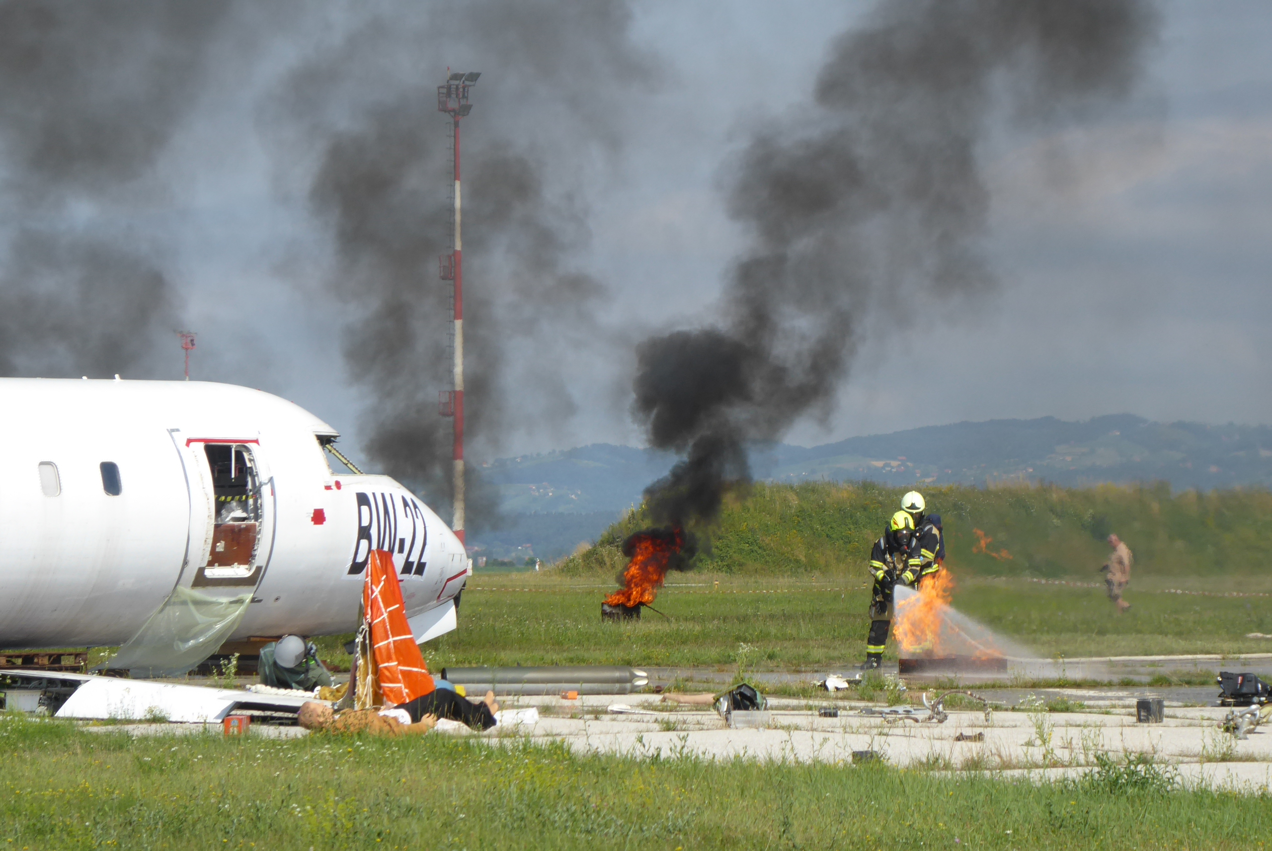 Na vojaškem letališču Cerklje ob Krki je Služba za preiskovanje letalskih nesreč in incidentov vojaških zrakoplovov Ministrstva za obrambo v sodelovanju z Nacionalnim forenzičnim laboratorijem Ministrstva za notranje zadeve izvedla vajo kriznega odzivanja v primeru letalske nesreče Zlomljeno krilo 2022.