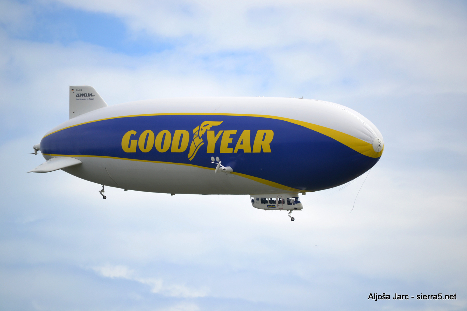 Goodyear Blimp, ki ga boste lahko opazovali na našem nebu, je model Zeppelin NT. Ta v dolžino meri več kot 75 metrov, visok je skoraj 18 metrov, pri tem pa ga poganjajo trije motorji z 200 konjskimi močmi, ki omogočajo hitrosti do 125 kilometrov na uro. Njegova posebnost je še, da lahko bdi nad določeno točko in se med lebdenjem lahko tudi obrne okoli lastne osi. Goodyear Blimp, ki sicer brez težav leti na višini 3.000 metrov, bo Slovenijo preletel približno 300 metrov nad tlemi, zato ga boste z lahkoto ujeli tudi v svoj objektiv.