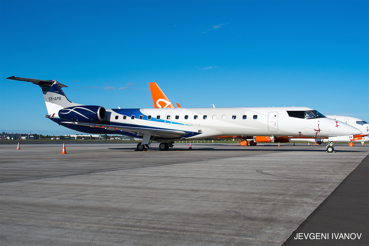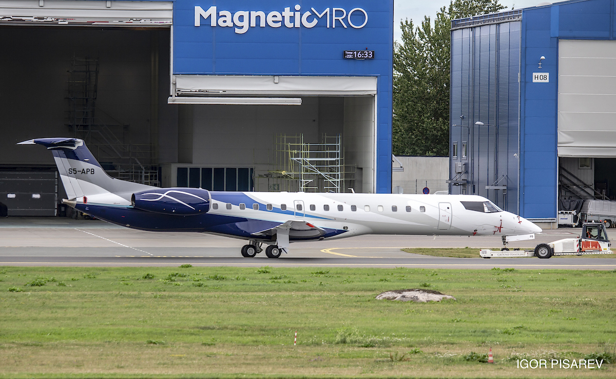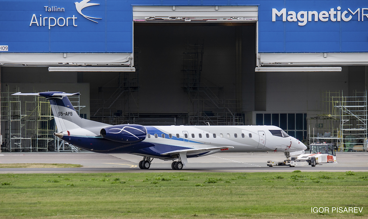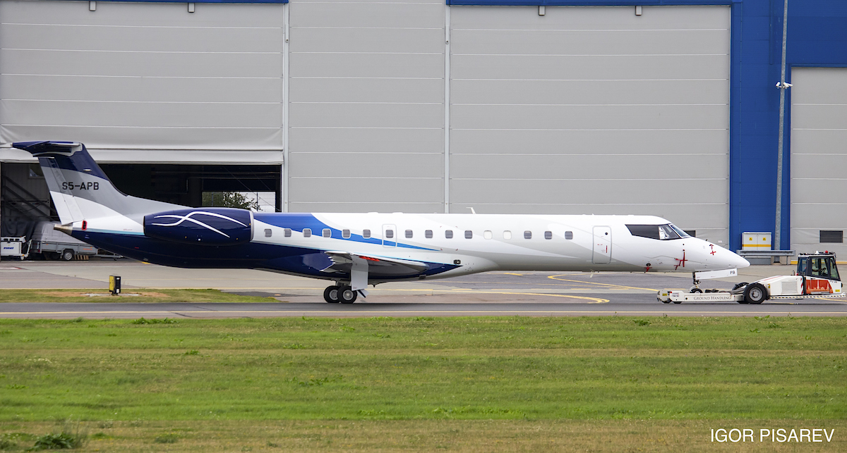 Po tem ko smo pred dnevi objavili, da je v slovenskem registru zrakoplovov na novo dodano letalo Embraer ERJ-145EP registrskih oznak S5-APB, nam je uspelo pridobiti že prvo fotografijo letala (Avtor: Jevgeni Ivanov) po zaključenem barvanju v Talinu, kamor je letalo odletelo pred dnevi iz Brnika.