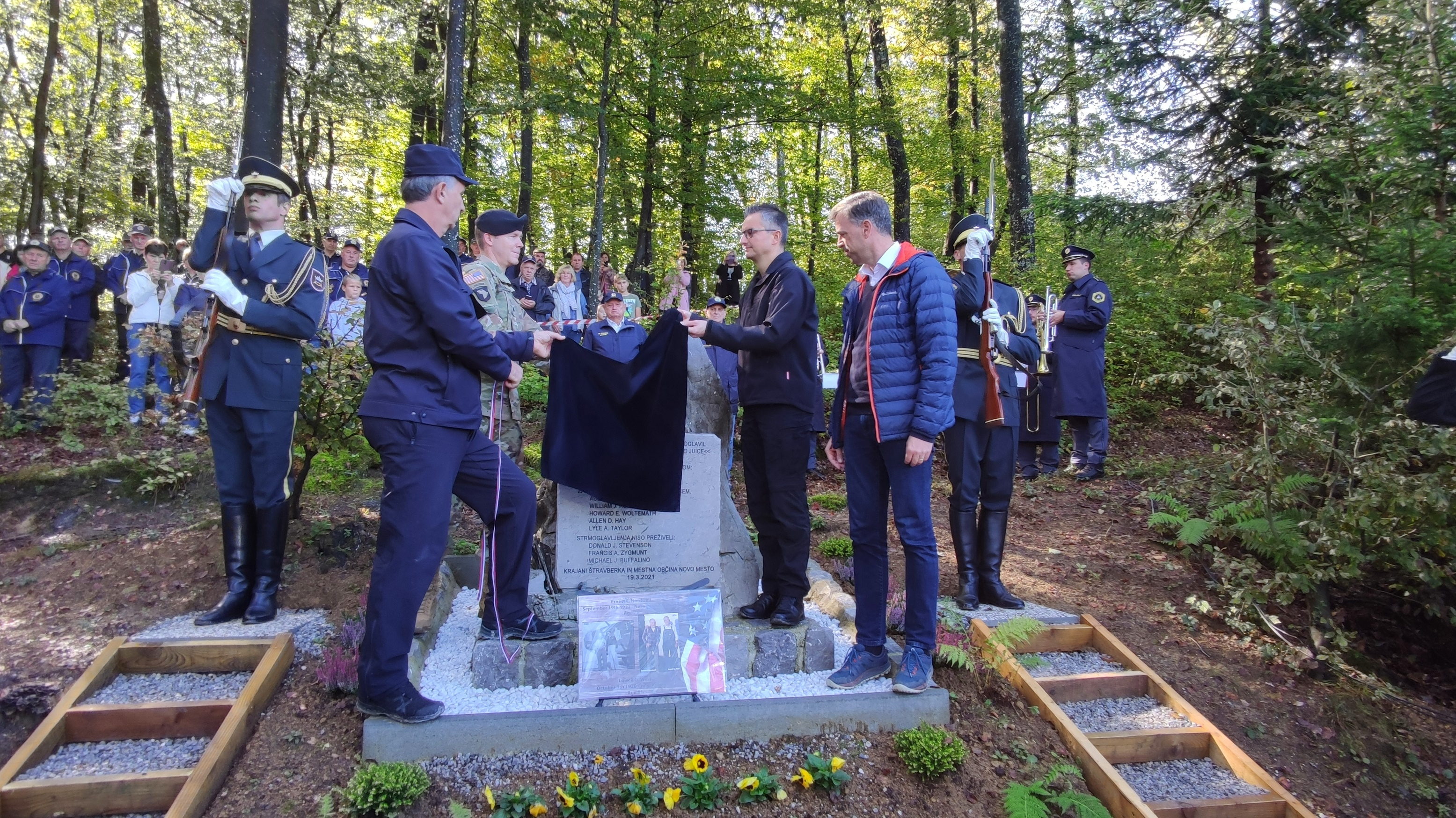 Na slovesnosti je navzoče nagovoril tudi župan Mestne občine Novo mesto Gregor Macedoni, ki je izpostavil, da je vsaka vojna preizkušnja solidarnosti in sočutja. Obrambni ataše ZDA v Republiki Sloveniji podpolkovnik Ben Shaha se je zahvalil za solidarnost med drugo svetovno vojno in izrazil hvaležnost za ohranjanje spomina na pomen takratnih dejanj. Zbrane je nagovoril tudi sin rešenega ameriškega pilota Ernieja Nordwella.