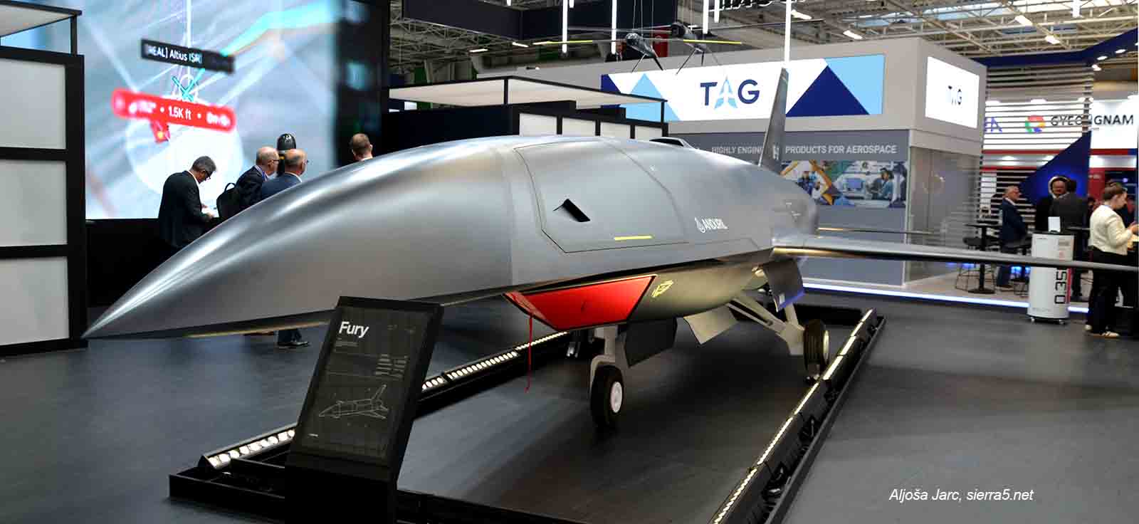 Število razstavljenih dronov, predvsem manjših dimenzij, je bilo veliko. Razvoj in proizvodnja takih sistemov je relativno poceni, zato ni čudno, da so se številna manjša podjetja in start upi začeli ukvarjati prav s tem. Med najbolj kompleksne brezpilotne sisteme spada YFQ-44A Fury ameriškega proizvajalca Anduril Industries. Podjetje so ustanovili pred osmimi leti, dandanes pa spada med vodilne v tem sektorju. Na sejmu so oznanili sodelovanje z nemškim Rheinmetallom za razvoj in prodajo že obstoječih dronov Fury in Barracuda na evropskem trgu ter sodelovanje pri razvoju motorjev za rakete. Nov projekt je predstavil tudi francoski Dassault in sicer maketo »loyal wingmana« s »stealth« zmogljivostimi, ki naj bi bil sprejet v uporabo že leta 2033. Dron bodo sprva uporabljali skupaj z letali Rafale in kasneje FCAS.