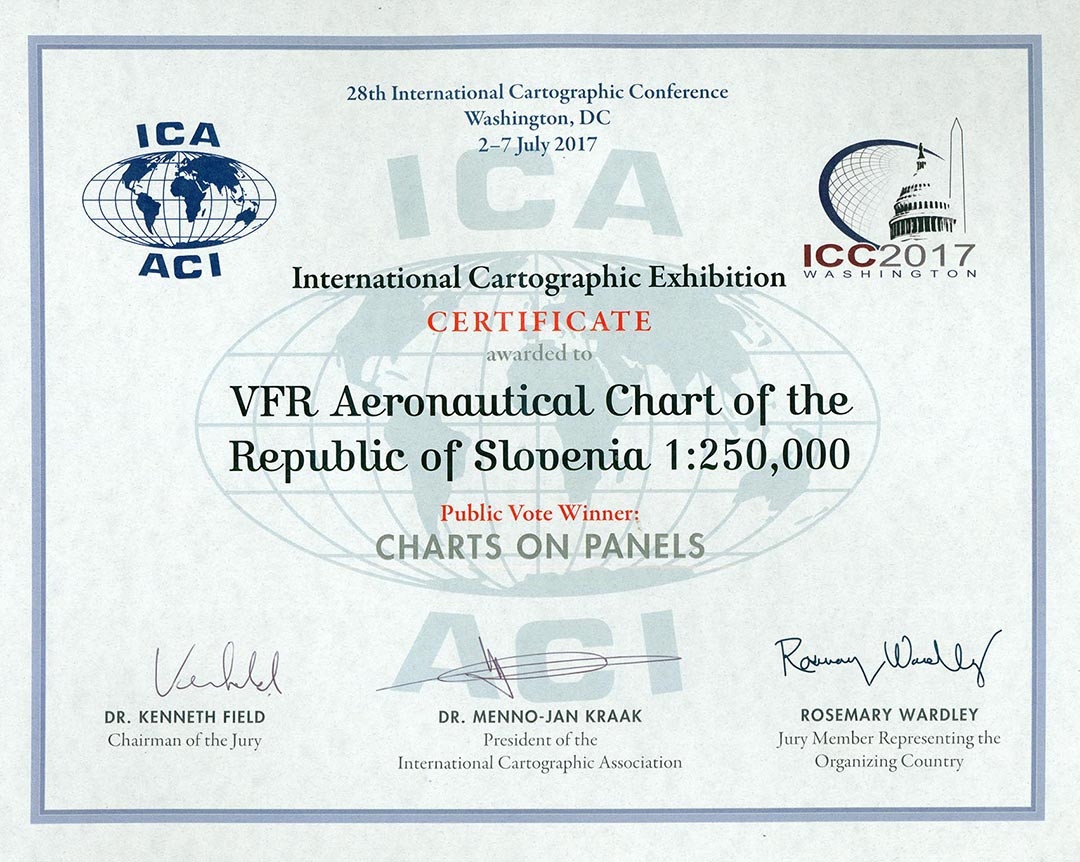 Geodetski inštitut Slovenije je sredi julija ponovno prejel ugledno mednarodno priznanje na kartografski razstavi Mednarodnega kartografskega združenja (ICA).