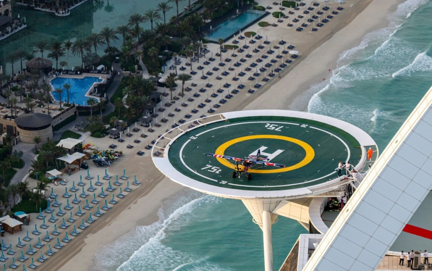 Nov poseben letalski podvig pod pokroviteljstvom Red Bulla so tokrat izvedli na heliportu hotela Burj Al Arab Jumeirah v Dubaju, na višini 212 m.