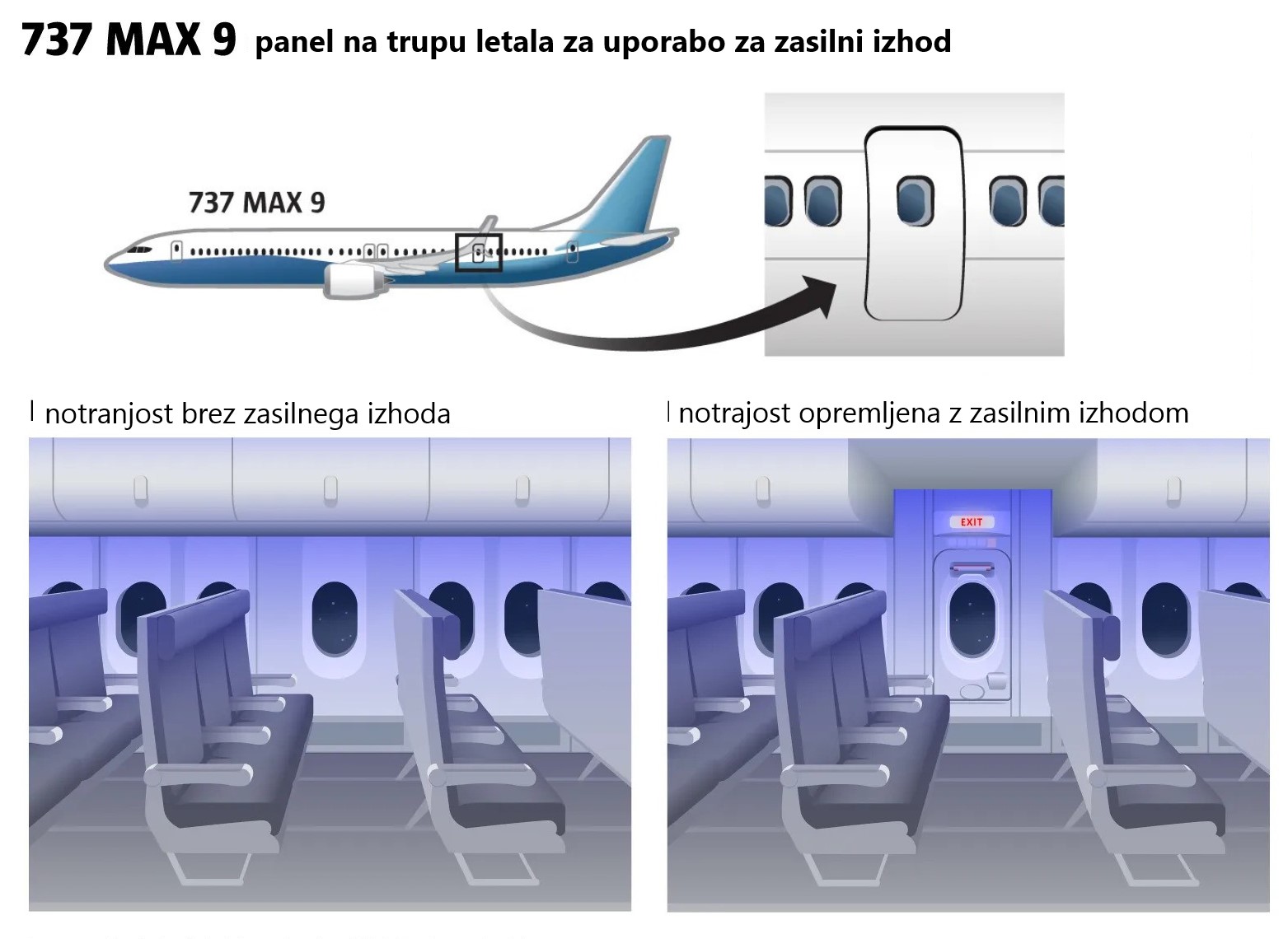 Panel na trupu letal sicer prekriva pred pripravljeno odprtino za zasilni izhod. Dodatni zasilni izhod običajno namestijo nizkocenovne letalske družbe, ki uporabljajo več dodatnih sedežev. Več sedežev v kabini nato zahteva tudi več poti za evakuacijo. Vendar pa so ti izhodi na letalih z manj sedeži, kot je bilo pri Alaska Airlines trajno zaprti.