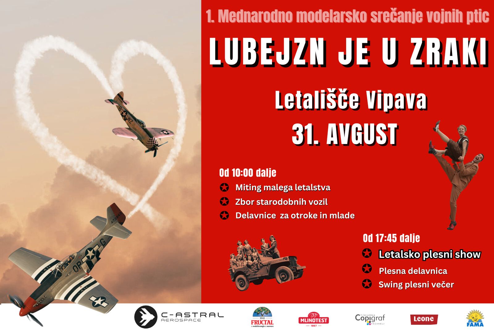 Letališče Vipava, eno najbolj slikovitih krajev v Sloveniji, bo 31. avgusta letos gostilo 1. Mednarodno modelarsko srečanje vojnih ptic z edinstvnim letalsko-plesnim dogodkom "Lubejzn je u zraki".